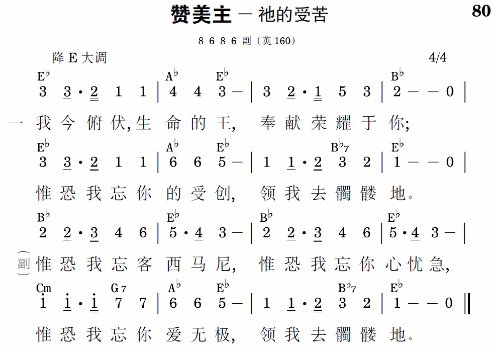 唯恐我忘客西马尼,唯恐我忘你心忧急,唯恐我忘你爱无极,领我去髑髅地。