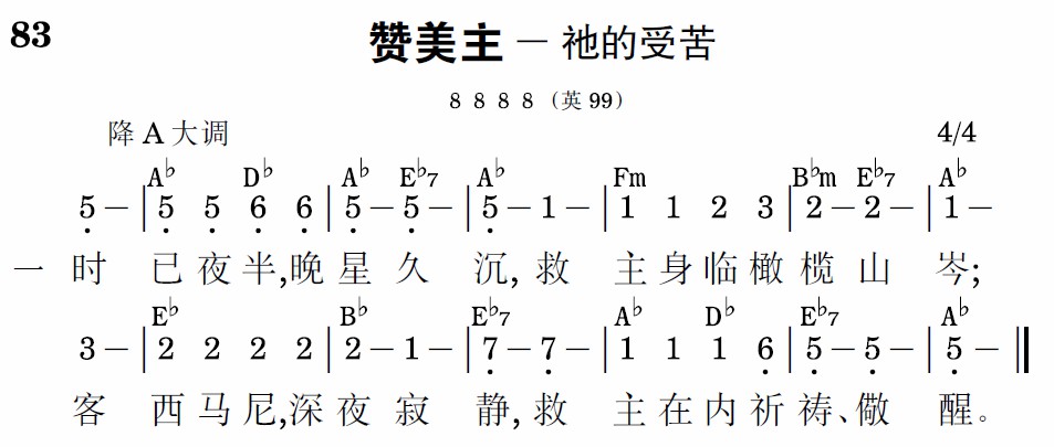 时已夜半,晚星久沉,救主身临橄榄山岑;客西马尼,深夜寂静,救主在内祈祷、儆醒。