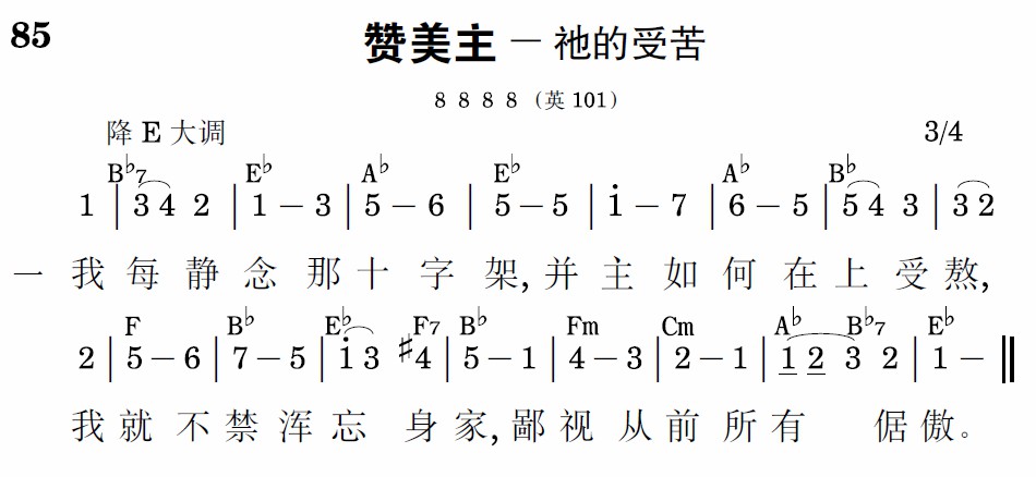 看从祂头!祂脚!祂手!忧情、慈爱和血而流!那有爱忧如此相遘?荆棘编成如此冕旒?