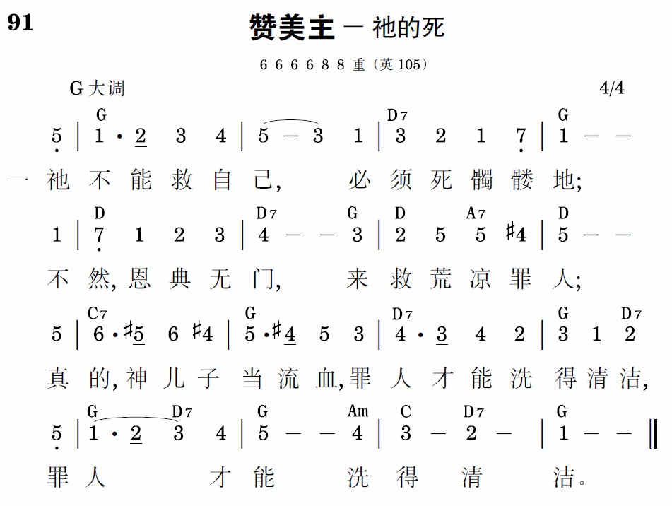 祂不能救自己,必须死髑髅地;不然,恩典无门,来救荒凉罪人;真的,神儿子当流血,罪人才能洗得清洁,罪人才能洗得清洁。