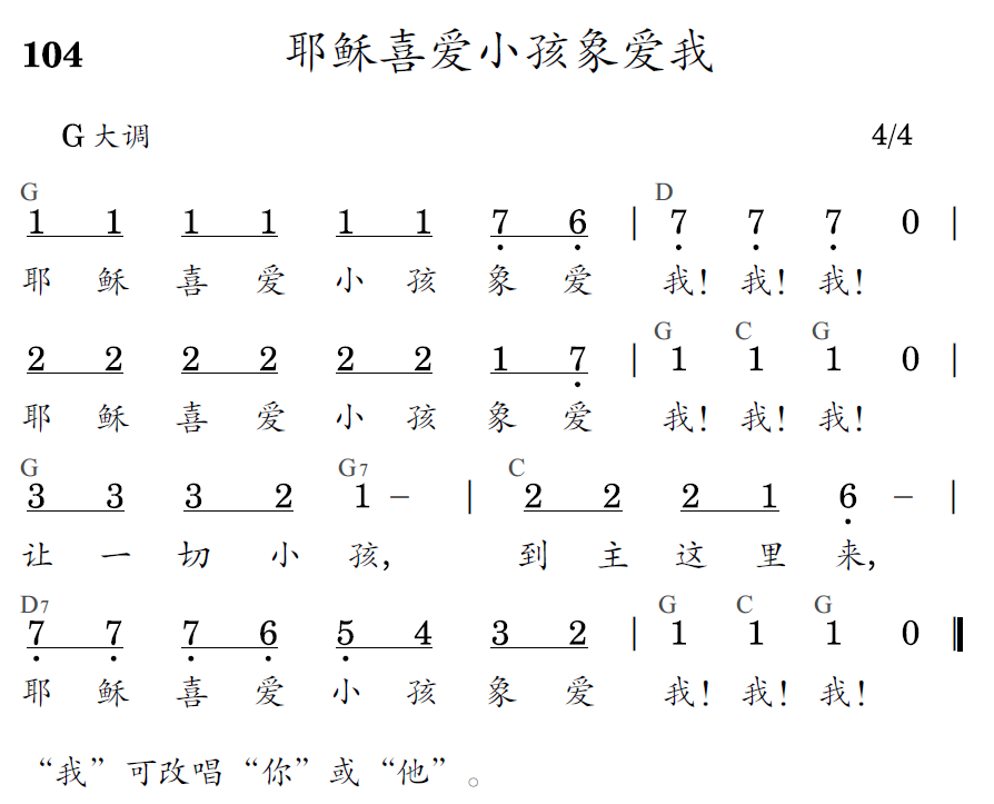 耶稣喜爱小孩像爱我!我!我!耶稣喜爱小孩像爱我!我!我!让一切小孩,到主这里来,耶稣喜爱小孩像爱我!我!我!