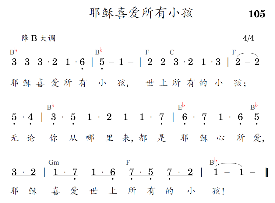 耶稣喜爱所有小孩,世上所有的小孩;无论你从哪里来,都是耶稣心所爱,耶稣喜爱世上所有的小孩!