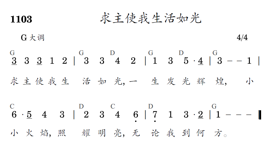 求主使我生活如光,一生发光辉煌,小小火焰,照耀明亮,无论我到何方。