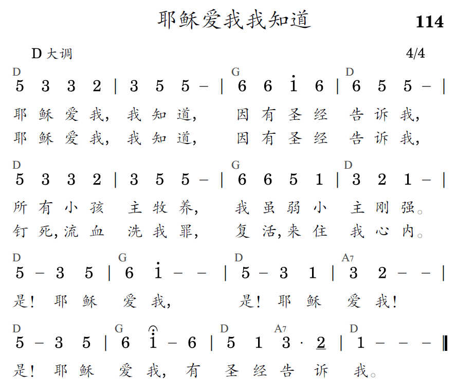 耶稣爱我,我知道,因有圣经告诉我,所有小孩主牧养,我虽弱小主刚强。
