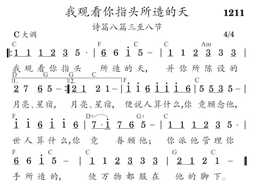 我观看你指头所造的天,并你所陈设的月亮、星宿,我观看你指头所造的天,并你所陈设的月亮、星宿,便说人算什么,你竟顾念他,世人算什么,你竟眷顾他;你派他管理你手所造的,使万物都服在他的脚下。