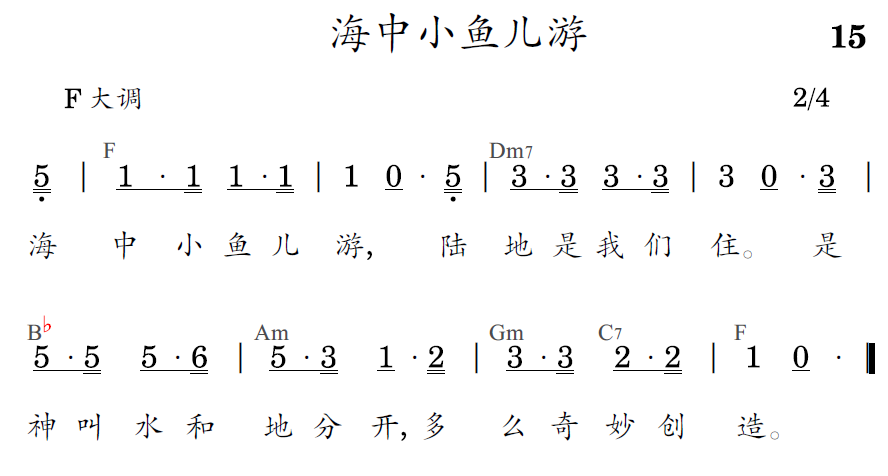 海中小鱼儿游,陆地是我们住。是神叫水和地分开,多么奇妙创造。