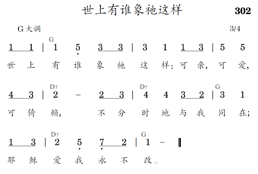 世上有谁像祂这样:可亲,可爱,可倚赖,不分时地与我同在;耶稣爱我永不改。