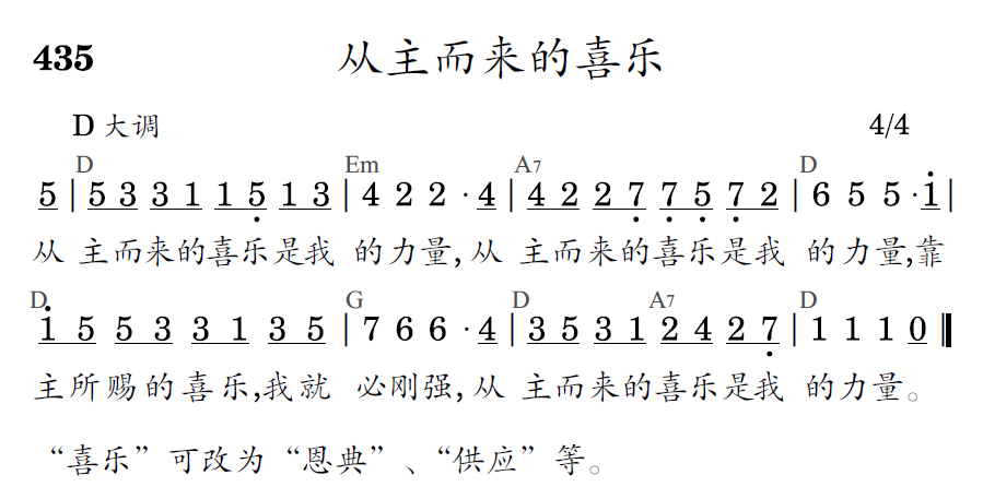 ‘喜乐’可改为‘恩典’、‘供应’等。