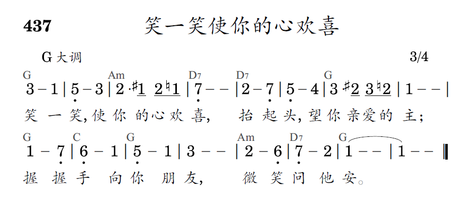 笑一笑,使你的心欢喜,抬起头,望你亲爱的主;握握手向你朋友,微笑问他安。