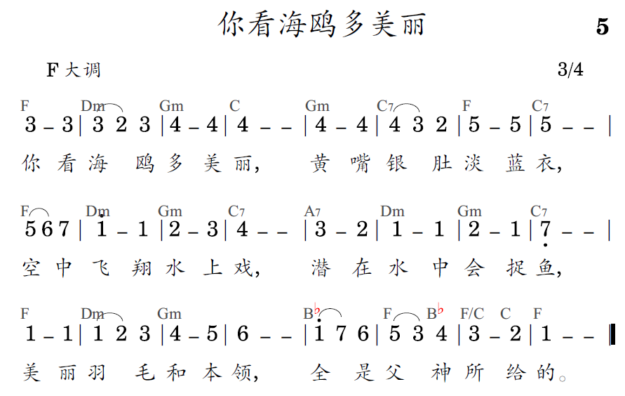 你看海鸥多美丽,黄啄泺肚淡蓝衣,空中飞翔水上戏,潜在水中会捉鱼,美丽羽毛和本领,全是父神所给的。