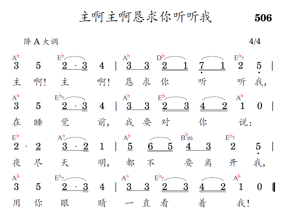 主啊!主啊!恳求你听听我,在睡觉前,我要对你说:夜尽天明,都不要离开我,用你眼睛一直看着我!