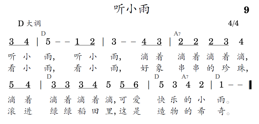 听小雨,听小雨,滴答滴答滴答滴,滴答滴答滴答滴,可爱快乐的小雨。