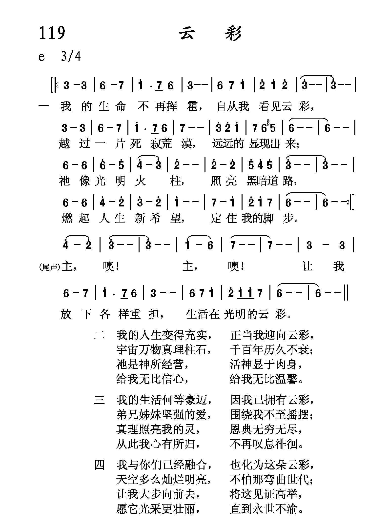 尾声:主,噢!主,噢!让我放下各样重担,生活在光明的云彩。