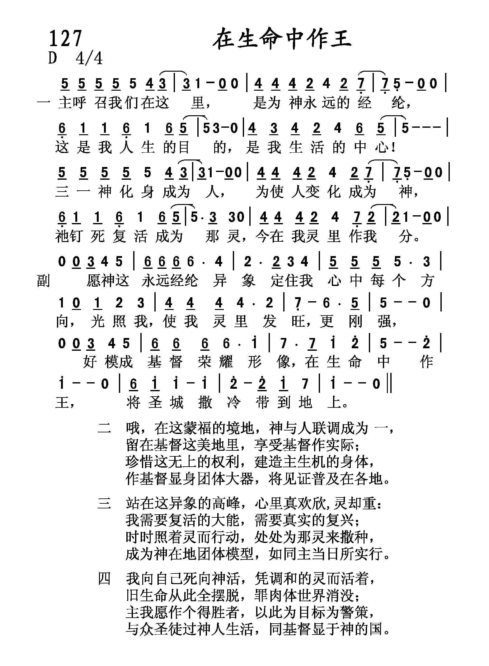 愿神这永远经纶异象定住我心中每个方向,光照我,使我灵发旺,更刚强,好模成基督荣耀形像,在生命中作王,将圣城撒冷带到地上。