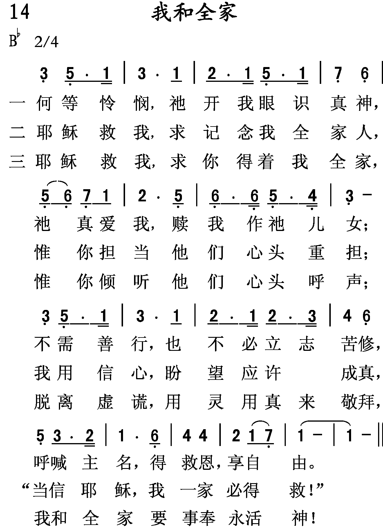 耶稣救我,求你得着我全家,惟你倾听他们心头呼声;脱离虚谎,用灵用真来敬拜,我和全家要事奉永活神!