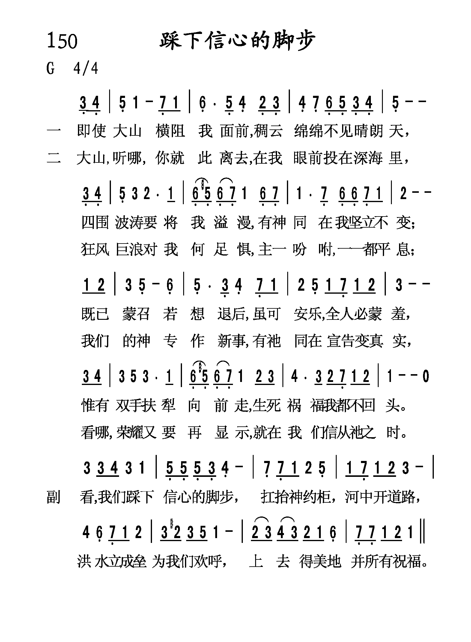 即使大山横阻我面前,稠云绵绵不见晴天,四围波涛要将我溢漫,有神同在我坚立不变;既已蒙召若想退后,虽可安乐,全人必蒙羞,惟有双手扶犁向前走,生死祸福我都不回头。