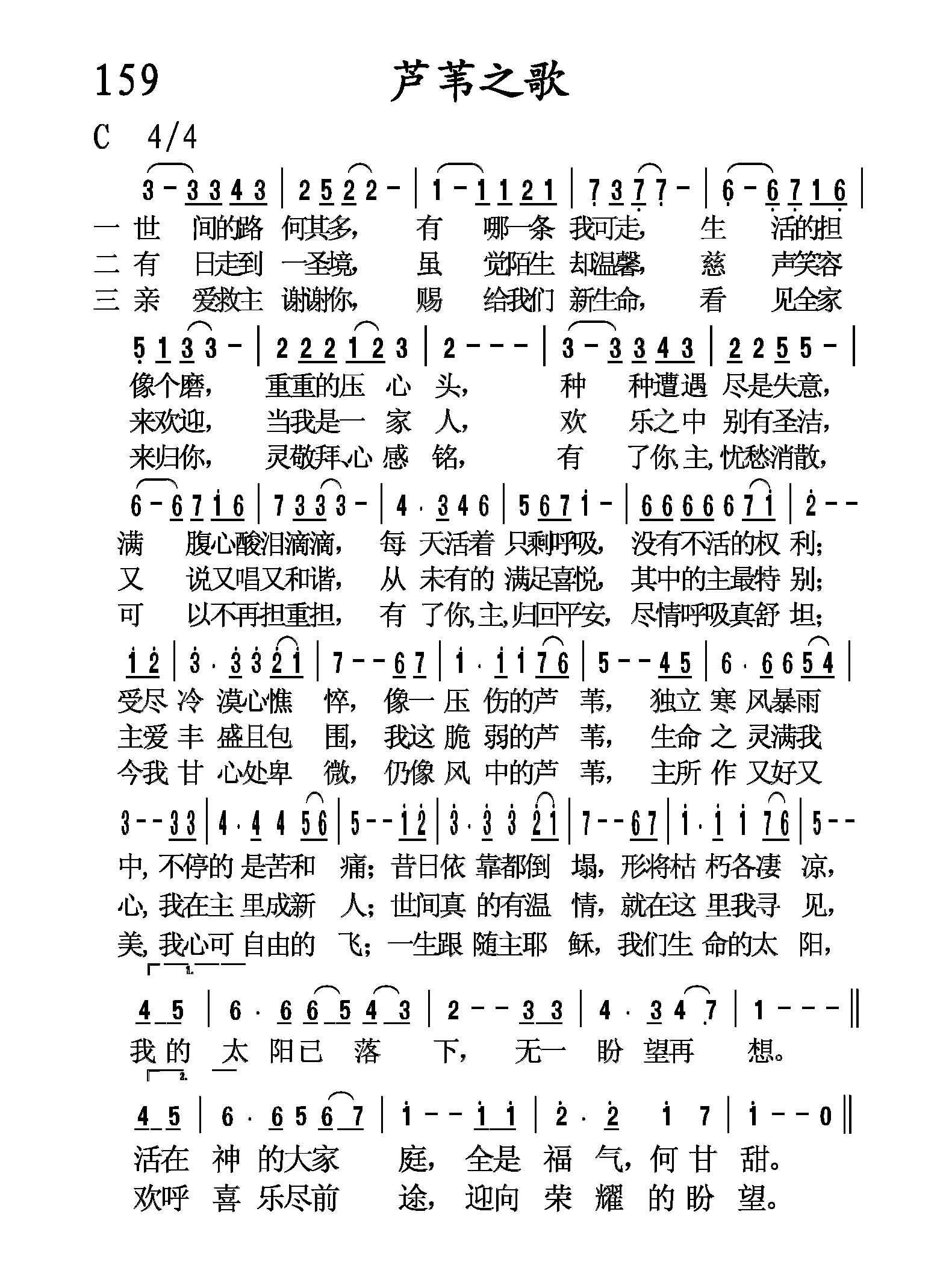 亲爱救主谢谢你,赐给我们新生命,看见全家来归你,心敬拜心感铭,有了你,主,忧愁消散,可以不再担重担,有了你,主,归回平安,尽情呼吸真舒坦。今我甘心处卑微,仍像风中的芦苇,主所作又好又美,我心可自由地飞;一生跟随主耶稣,我们生命的太阳,欢呼喜乐尽前途,迎向荣耀的盼望。
