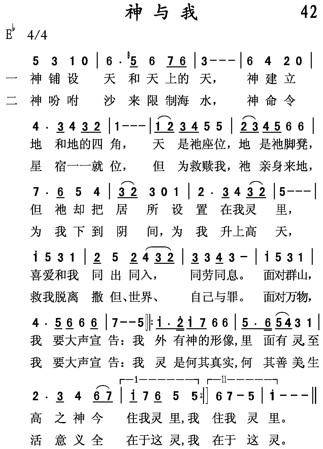 神铺设天和天上的天,神建立地和地上的四角,天是祂座位,地是祂脚凳,但祂把居所设置在我灵里,喜爱和我同出同入,同劳同息。面对群同,我要大声宣告:我外有神的形象,里面有灵,至高这神今住在我灵里,我住我灵里