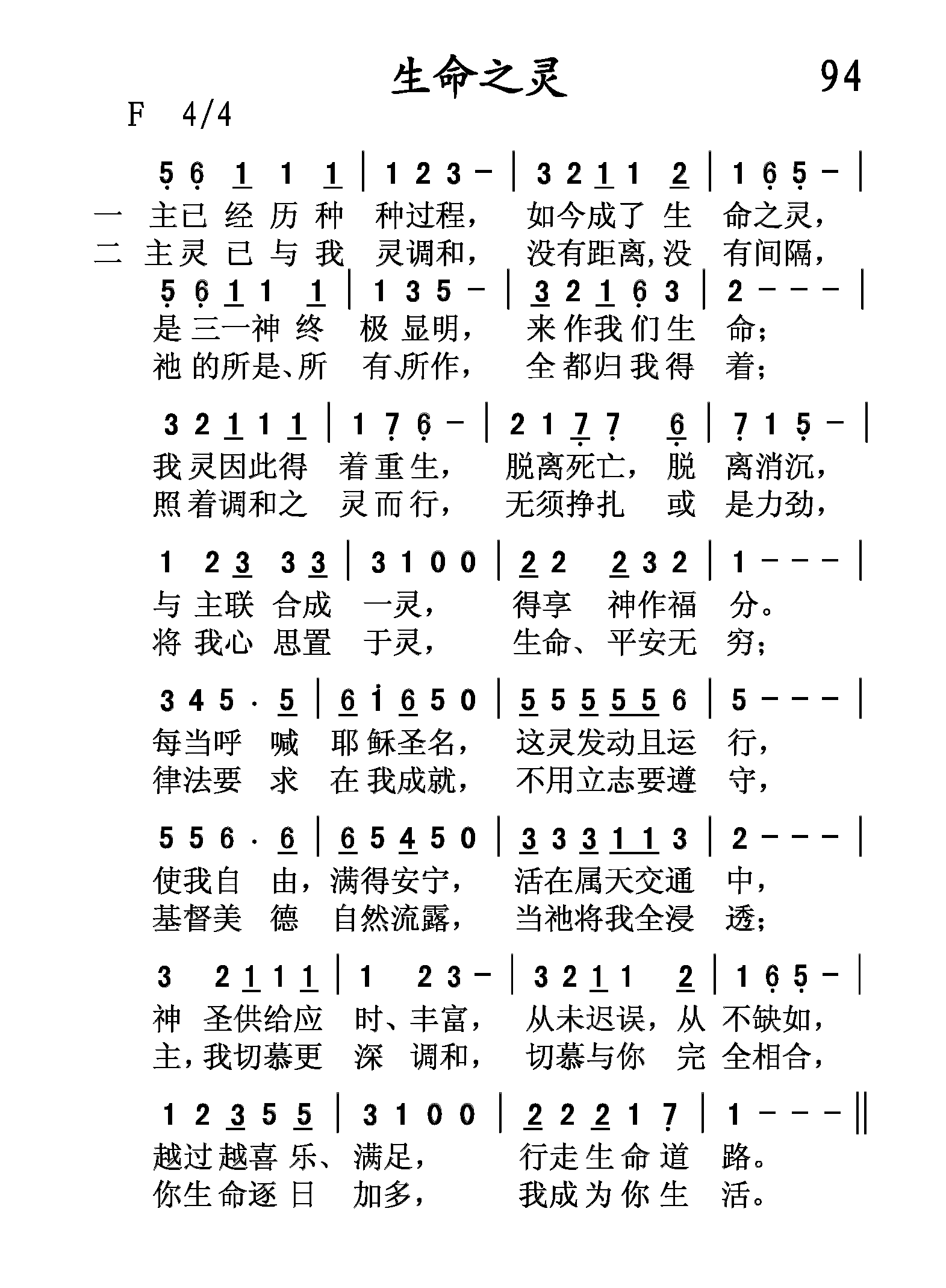 主灵已与我灵调和,没有距离,没有间隔,祂的所是、所有、所作,全都归我得着;照着调和之灵而行,无须挣扎或是力劲,将我心思置于灵,生命、平安无穷;律法要求在我成就,不用立志要遵守,基督美德自然流露,当祂将我全浸透;主,我切慕更深调和,切慕与你完全相合,你生命逐日加多,我成为你生活。